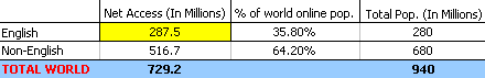 Here is a graph that shows you the 287.5 Million "English Speaking Internet Users" we are referring to: