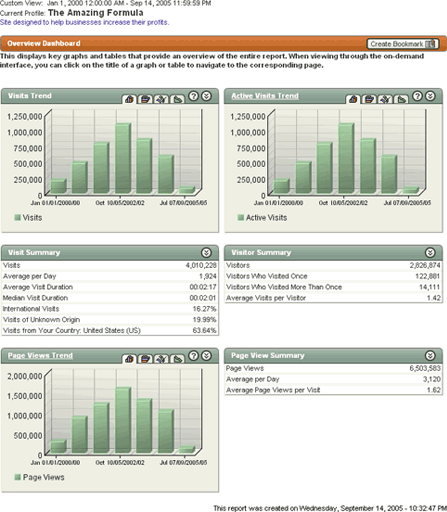Here's another screen capture that shows the same statistics as the one above, only this time it's a larger screen shot with the date/time stamped on the top and BOTTOM of the file and from that you can clearly see it's taken directly from Web Trends Live on September 14th, 2005 at 10:32 AM.